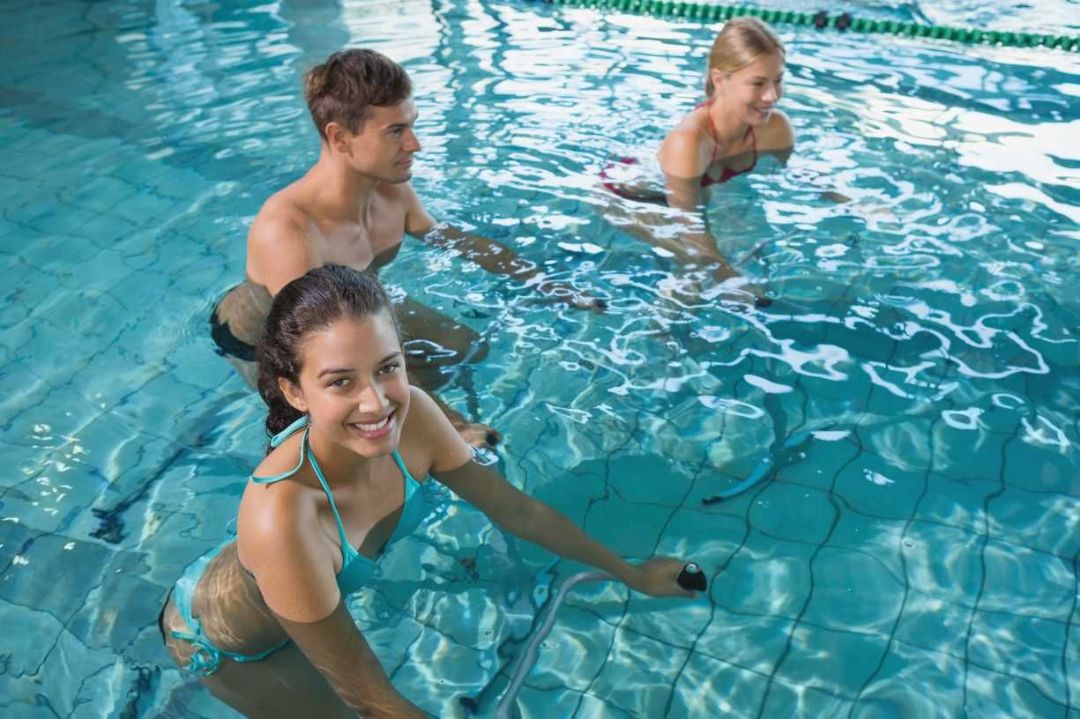 Ein erfrischendes Ganzkörpertraining auf fetzige Musik. Es wird sitzend und stehend auf einem Aqquatix Bike geradelt, der Oberkörper wird mit Kleingeräten trainiert. Aqua-Cycling kräftigt die Muskulatur, strafft die Haut, fördert das Herz-Kreislauf-System und ist optimal für die Durchblutung. Die Bikes besitzen eine Widerstandsschraube und sind somit für jedes Fitnesslevel geeignet. Sie benötigen keine speziellen Schuhe.