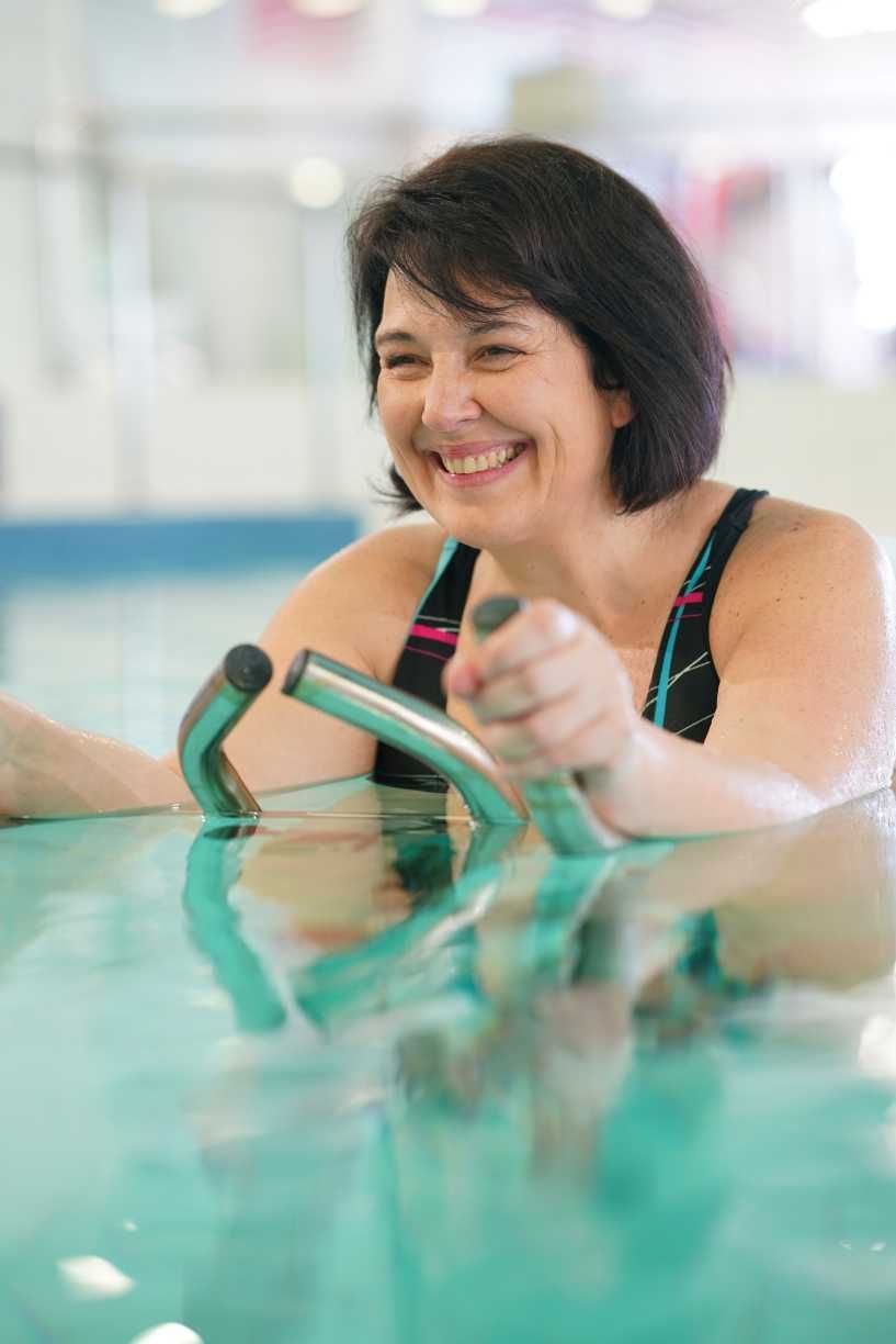 Ein erfrischendes Ganzkörpertraining auf fetzige Musik. Es wird sitzend und stehend auf einem Aqquatix Bike geradelt, der Oberkörper wird mit Kleingeräten trainiert. Aqua-Cycling kräftigt die Muskulatur, strafft die Haut, fördert das Herz-Kreislauf-System und ist optimal für die Durchblutung. Die Bikes besitzen eine Widerstandsschraube und sind somit für jedes Fitnesslevel geeignet. Sie benötigen keine speziellen Schuhe.