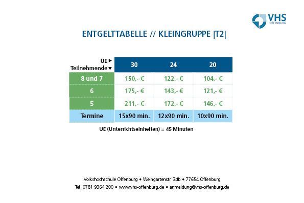 Die Kursgebühr ist nach der Anzahl der Teilnehmenden gestaffelt.